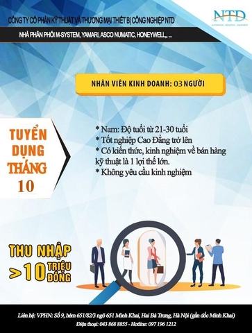 TUYỂN DỤNG THÁNG 10 - NHÂN VIÊN KINH DOANH TẠI HÀ NỘI