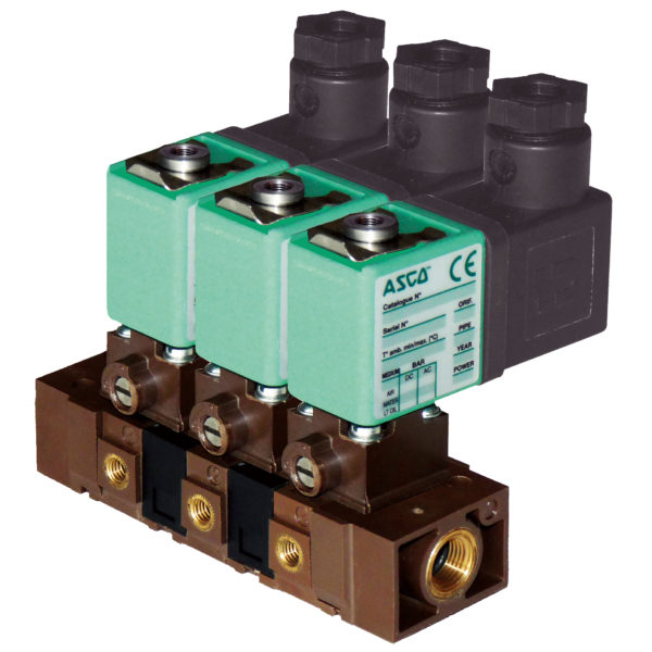 ASCO series 109 direct operated solenoid valve with pad mounting body are compact and light weight which makes assembly onto single or joinable subbases easier. AC/DC interchangeability of the solenoid without disassembly of the valve. Manual operator allows an easy installation. The solenoid valves satisfy all relevent EC directives.