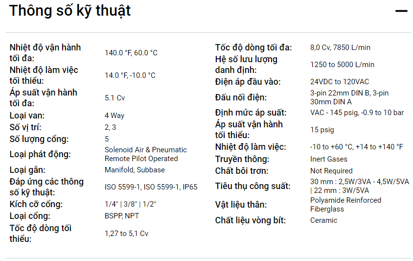 Van Điện Từ Khí Nén ISO - Dòng DX ISOMAX 5599-1