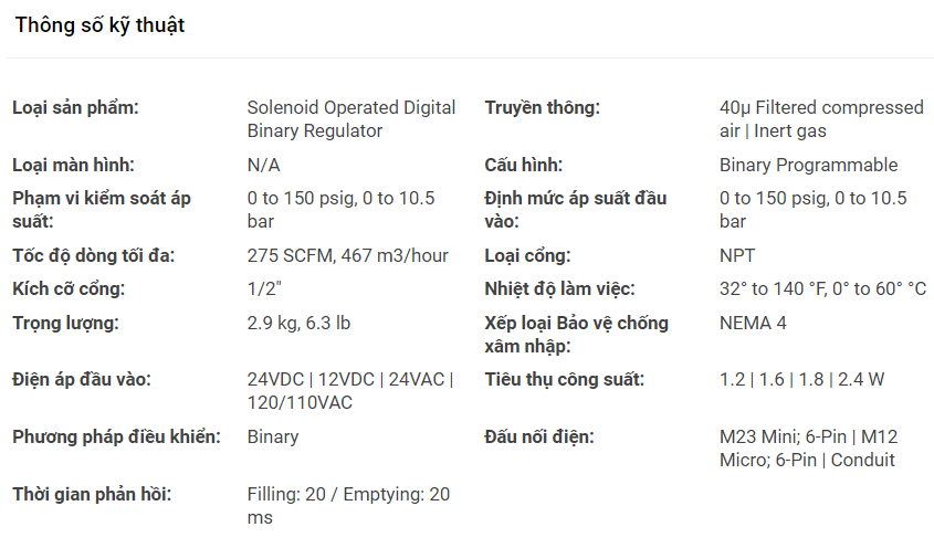 Van Điều Chỉnh Không Khí Lập Trình (nhị phân) - Dòng Par-15