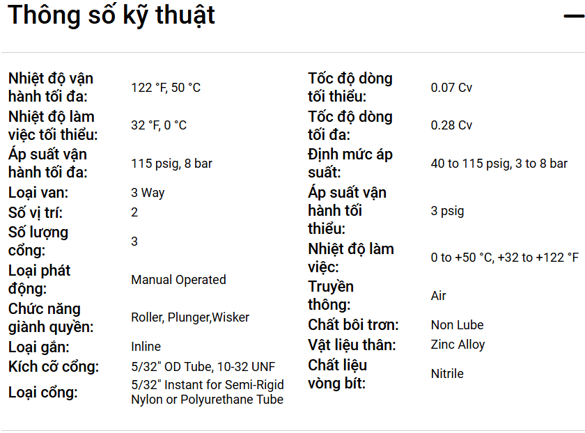 Công tắc giới hạn khí nén là van cơ học 3 chiều nhỏ gọn.