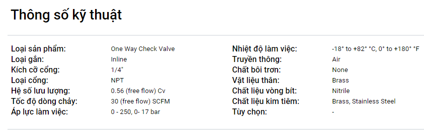 Van kiểm tra dòng 3047 cho phép dòng chảy tự do một chiều.