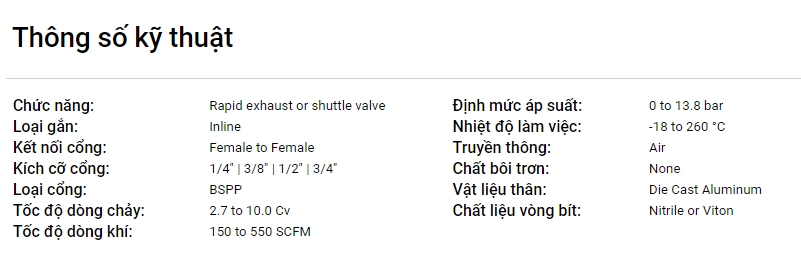 Van xả nhanh P4Q giúp xả nhanh khí và tăng tốc độ hành trình.