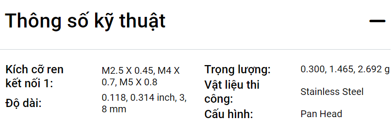 Vít thay thế Parker C-Series cho van mini C7, C15, C21.